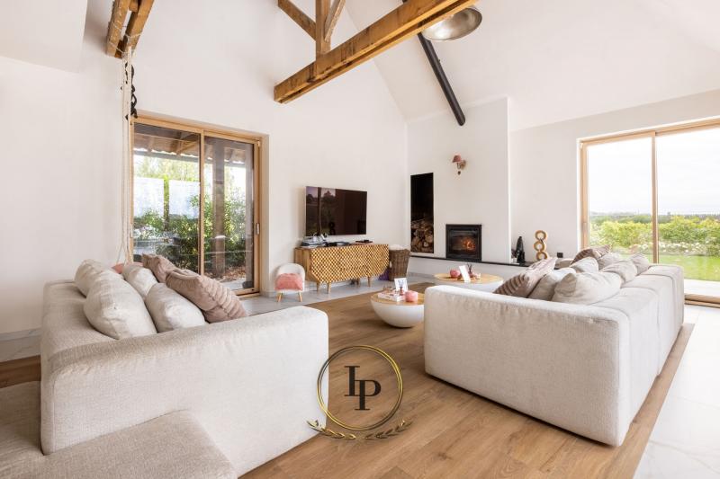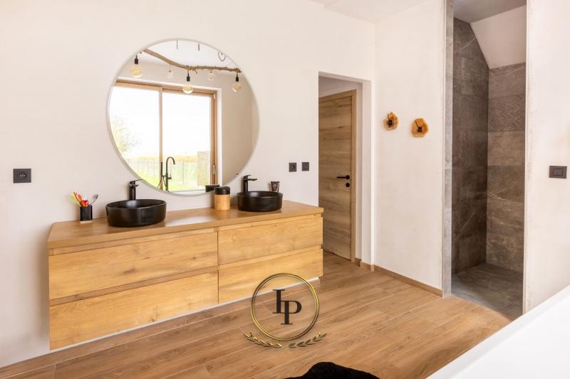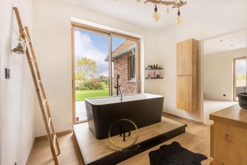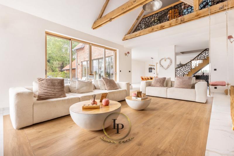 Irréprochable de conception ! L'Immobilière de Prestige vous présente en exclusivité cette villa de 2021, sise sur un terrain de 30 ares, sans vis à vis, dans un environnement campagnard et totalement calme. Son architecture chaleureuse et la disposition de ses volumes sont sans défauts. Le choix des matériaux dégagent une perception de haute qualité . Entre autre, son carrelage style marbre de 120 sur 120, ou encore ses châssis aluminium extérieur et bois intérieur. On retrouve ainsi à l'intérieur un hall d'entrée desservant un vaste espace cuisine hyper équipée avec îlot, bureau, salle à manger et salon cathédral avec feu ouvert. Toujours au RDC, une véritable suite parentale, généreuse en volume et idéalement positionnée. Le RDC bénéficie également d'une seconde entrée avec buanderie et accès à un garage trois voitures. A l'étage, trois grandes chambres supplémentaires, avec chacune sa salle de bain privative. Les extérieurs sont entièrement clôturés et arborés. Tout s'harmonise en un ensemble unique et soigné.