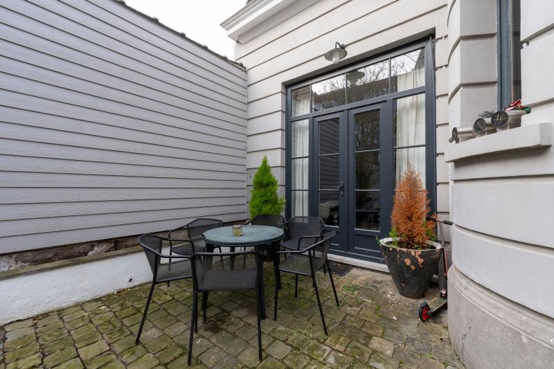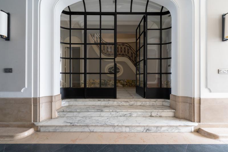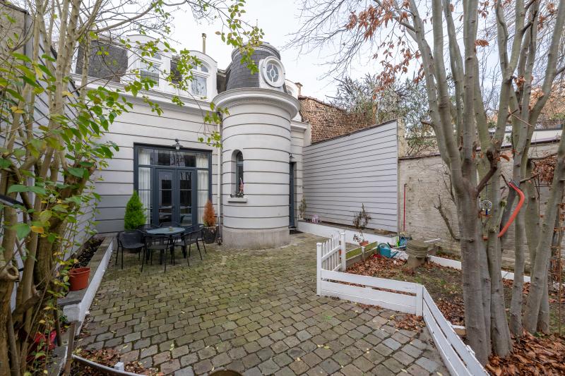 La porte d’entrée principale s’ouvre sur un vaste hall desservant le corps de logis principal, puis mène vers un jardin de ville intimiste ainsi qu’une conciergerie entièrement rénovée. Celle-ci comprend une cuisine, un séjour, un WC, une salle de bain et une chambre répartie sur deux niveaux. Cet espace indépendant est idéal pour accueillir une fille au pair, exercer une profession libérale ou générer un revenu locatif.