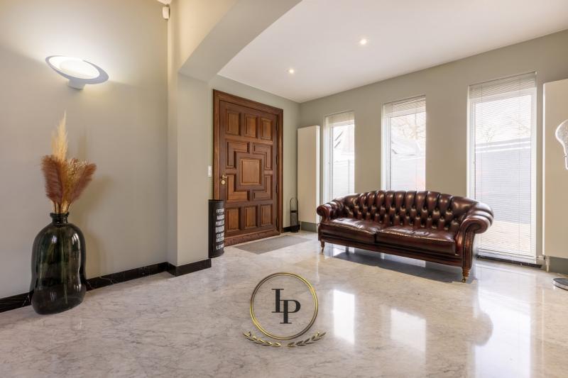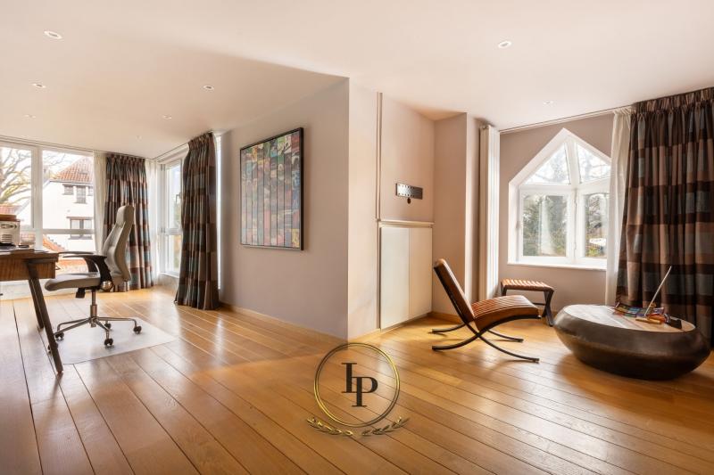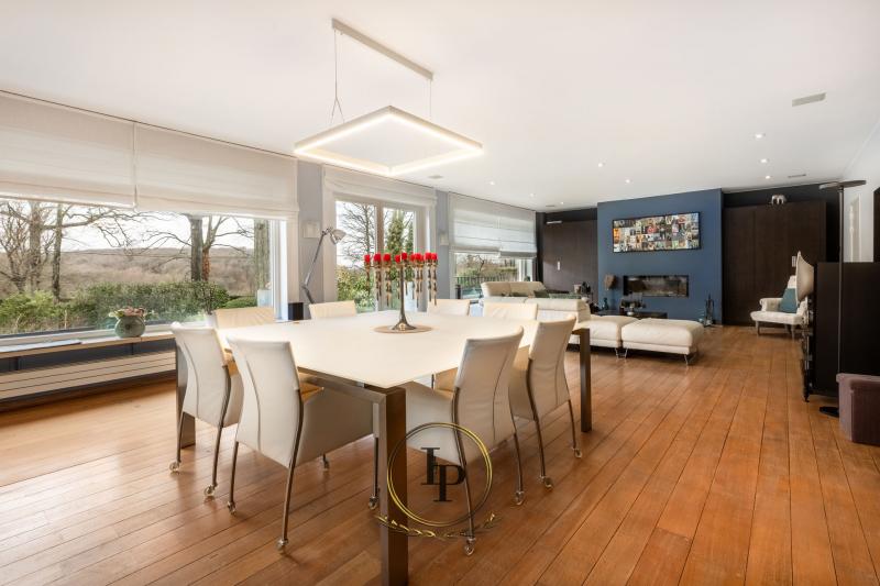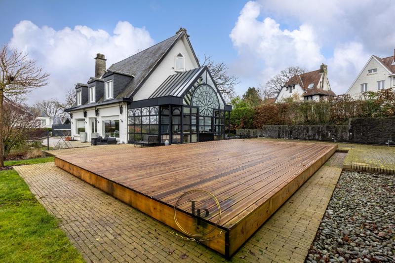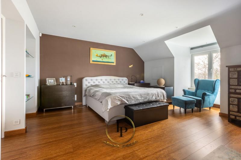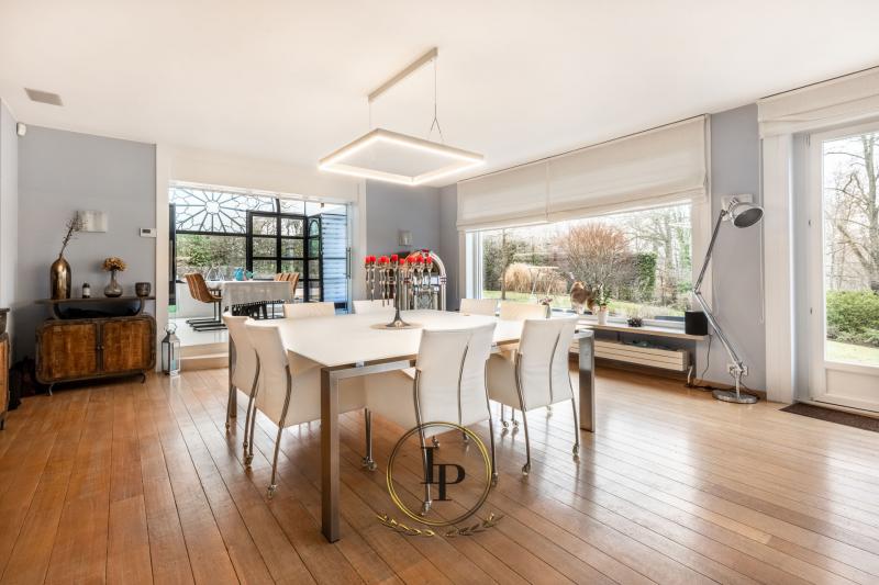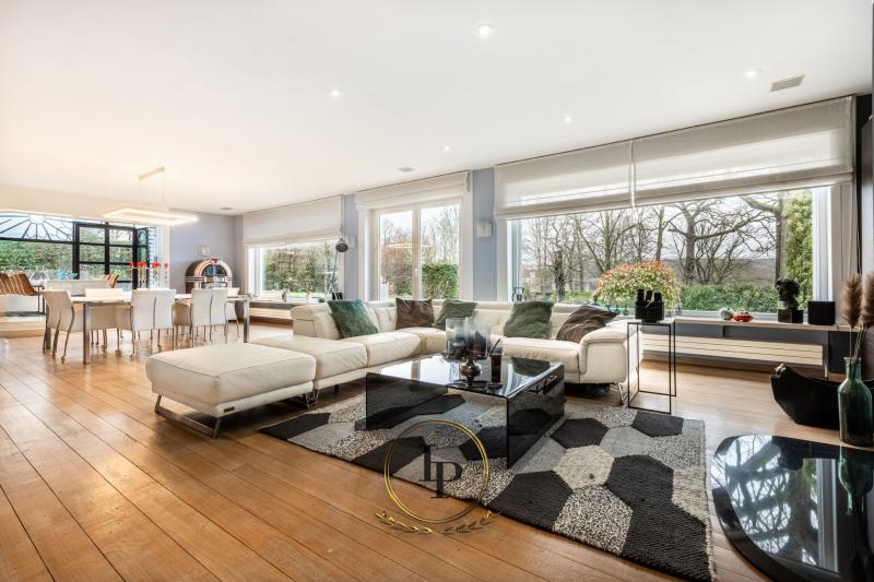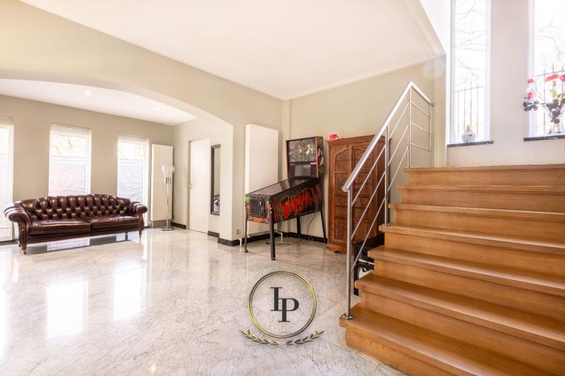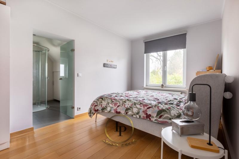 En exclusivité, au cœur du très recherché quartier résidentiel du Bois du Prince à Loverval, élégante villa de caractère entièrement rénovée, conjuguant prestige architectural et art de vivre contemporain. Implantée sur un terrain paysager, arboré, clôturé et sécurisé de 17a, la propriété séduit immédiatement par ses volumes harmonieux et sa luminosité remarquable. Le RDC s’ouvre sur un vaste hall de réception avec vestiaire et WC invités, menant vers un séjour raffiné avec feu ouvert et parquet en chêne issu d’un château. L’espace de vie se prolonge par une somptueuse verrière offrant une vue apaisante sur la piscine en mosaïque, actuellement dissimulée sous une élégante terrasse en bois démontable. La cuisine professionnelle BULTHAUP, équipée d’un piano LACANCHE, séduira les amateurs de gastronomie les plus exigeants. L’étage accueille une chambre avec salle de douche ainsi qu’une remarquable suite parentale climatisée avec dressing BULTHAUP et salle de bains privative complète. Le dernier niveau propose deux chambres supplémentaires et une salle de bains. Les caves entièrement aménagées offrent des prestations rares : salle de loisirs, espace douche et WC, cave à vin, cellier, buanderie et garage 3 voitures. Équipements irréprochables : chaudière gaz neuve, élec. conforme, filtration piscine neuve, alarme avec caméras, vidéophonie, portail motorisé, volets électriques, éclairage LED, rangements sur mesure, portes phoniques.